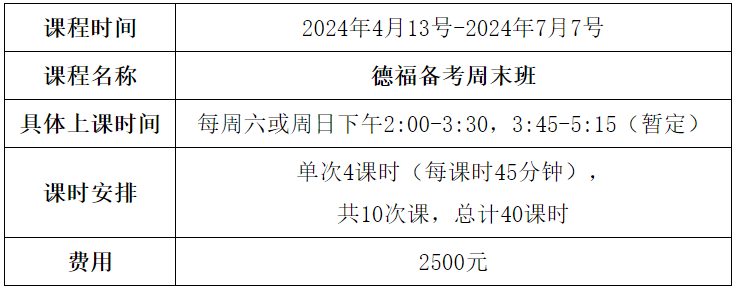 应各位同学及家长对公司开设德福考试培训的需求,三亿体育语言培训与考试中心计划于2024年上半年开办德福备考周末班,该课程为线下小班制授课,班额15人左右。