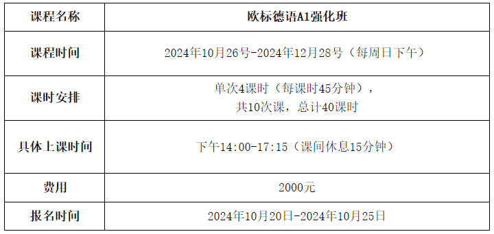 亲爱的同学,三亿体育语言培训与考试中心计划于2024下半年开办欧标德语A1强化班,该课程为线下小班授课,班额15人左右。