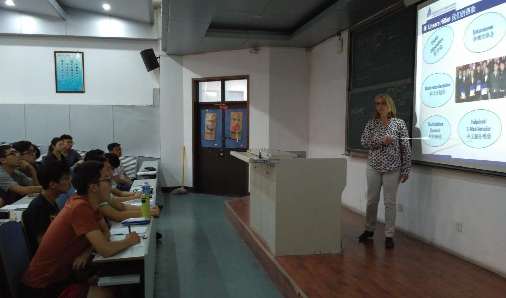 帕德博恩大学机械专业项目协调人Denzer博士,上周来公司进行了为期一周的工作访问。在此期间,Denzer博士与院领导进行了工作交流,相互介绍了中德双方的最新进展状况,探讨了今后发展的思路与规划。Denzer博士与薄建全副经理一起,为公司暑期赴德DAAD奖学金德语强化班的20名同学、秋季机械专业赴德留学的51名同学分别进行了出国前培训。此外,Denzer博士与曲之超教授以及德语中心负责人进行了交流,并与暑期选拔赴德国参加集中培训的两位德语年轻教师进行了座谈。另外,Denzer博士对机械专业选拔赴帕德博恩大学预科公司的5位同学进行了面试。